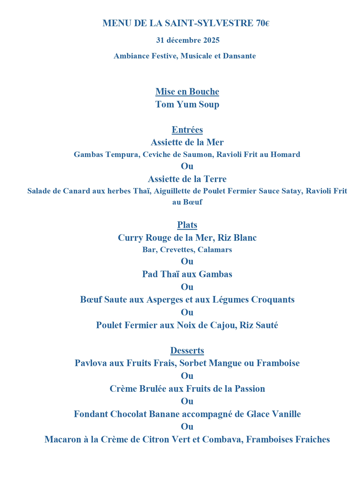 MENU SAINT-SYLVESTRE DU 31 DÉCEMBRE